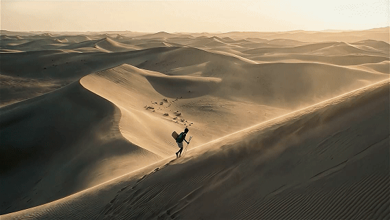 万相在生成过程中引入了对物理规律的显式约束与仿真能力,使环境粒子、材质反馈与主体动作处于同一生成逻辑之中:雪花的飞散轨迹与滑行速度、角度形成因果关联,运动模糊与光影变化也随镜头运动同步生成,避免了突兀感。