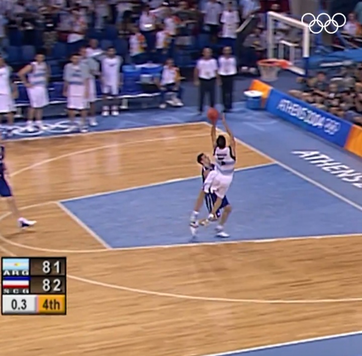 当时,阿根廷在剩余3.8秒的时候落后1分,吉诺比利在最后时刻接队友传球打进逆天打板绝杀球。